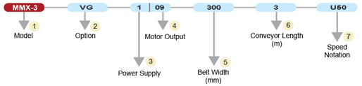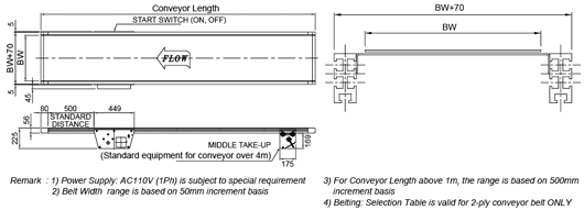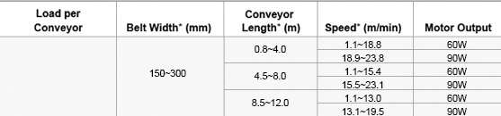 2) For Conveyor Length above 1m, the range is based on 500mm increment basis